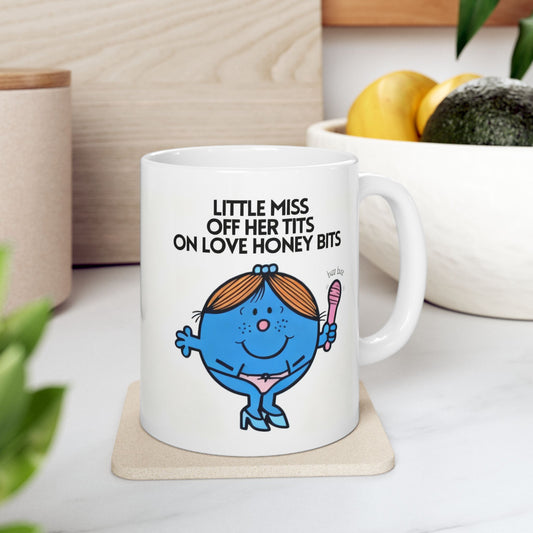 Novelty ' Little Miss Off Her Tits On Love Honey Bits' Funny Valentines Mug / Coaster
