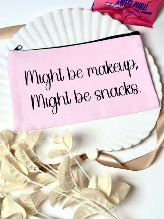'Might Be Makeup, Might Be Snacks' Pink & Black Zip Pouch