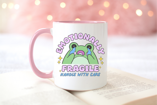'Emotionally Fragile, Handle With Care' Heart Handle Mug