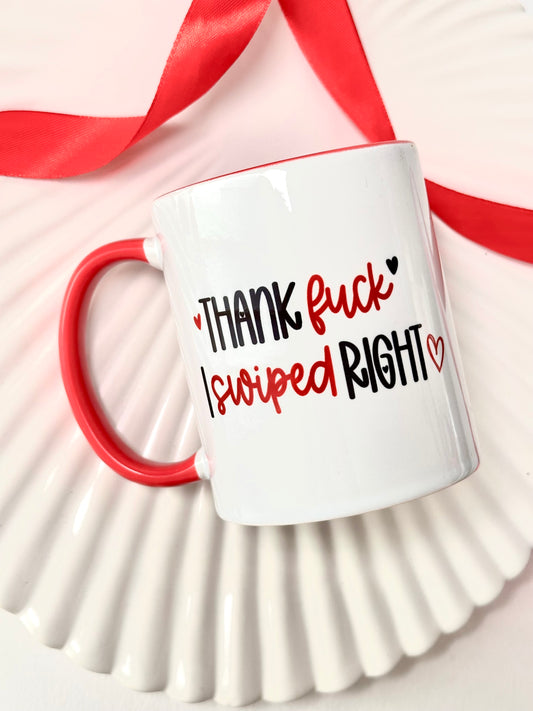 'Thank F^^k I Swiped Right' Red Handle Mug