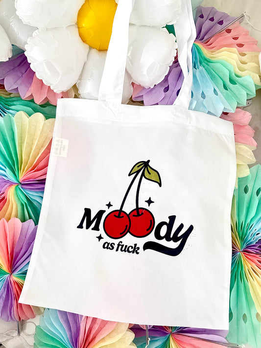 'Moody As F**k' Cherry Print Tote Bag Long Handles