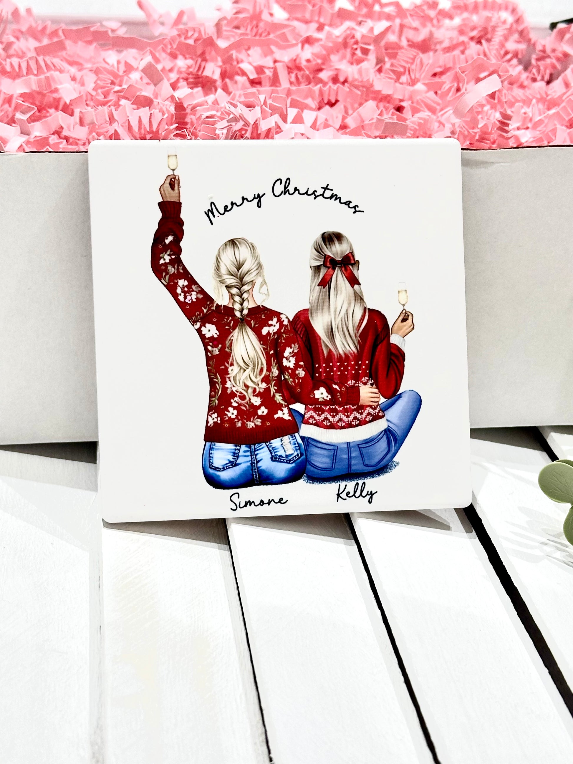 Personalised Christmas Coaster - Besties, Friends, Mum, Sisters etc