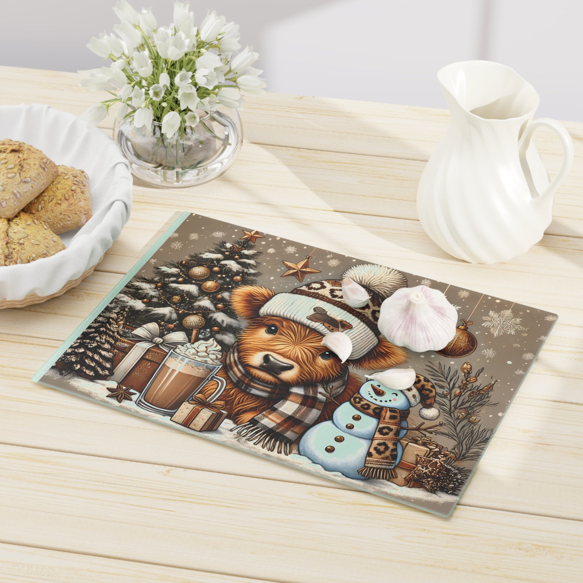 Cute Christmas Highland Cow Drinks, Chopping Glass Board