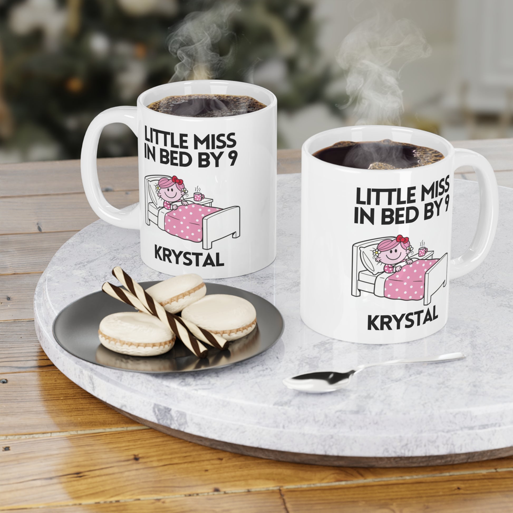 Personalised Novelty Little Miss.In Bed By 9 Character Mug 11oz
